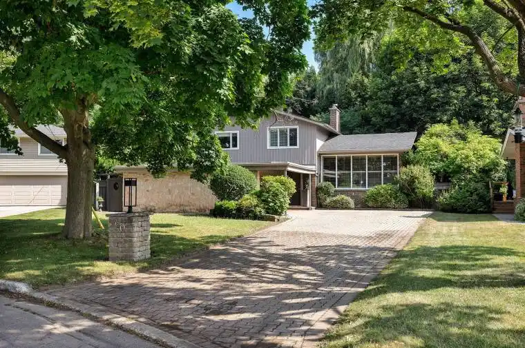 Step inside this sophisticated mid-century modern residence and discover a rare blend of architectural elegance and natural beauty in the heart of the prestigious Parkwoods neighbourhood. Set on an oversized, ravine-like, pie-shaped lot, this stylish side split spans nearly 2,000 SQ FT, thoughtfully updated while retaining much of its timeless character. Floor-to-ceiling windows bathe the interiors in natural light, complementing grand living spaces with vaulted ceilings, striking brick and stone-surround fireplaces, a modernized kitchen featuring top-of-the-line appliances with a waterfall centre island ideal for entertaining. The kitchen, formal living, and dining rooms flow seamlessly onto wraparound terraces, creating an effortless connection between indoor comfort and outdoor leisure. The upper level features 2 spacious bedrooms and a beautifully updated 4-piece bathroom with quartz counters, Italian tile, and custom cabinetry. The oversized primary retreat features a generous seating area, custom-built-ins, and picture windows that frame views of the lush, private backyard. The ground floor offers exceptional versatility, with a gas fireplace, a wall of built-ins, an office nook, and a walk-out to the scenic gardens perfect as a family room, private 3rd bedroom or in-law suite. A 4th bedroom, full bathroom, and laundry with ample storage complete the lower level. Outside, be swept away by the abundance of mature trees, stone steps, and cascading gardens that lead to a picturesque pool–your Muskoka-like escape in the city. A 2-car garage and private drive provide ample parking, adding to the homes unparalleled curb appeal. All this in a highly coveted neighbourhood, steps from reputable schools, including Victoria Park Collegiate’s acclaimed IB program. Minutes to the Don Valley Parkway and Highway 401, residents enjoy quick access to downtown and the GTA. An exceptional option for those seeking more space, privacy, & sophistication just beyond the city core.