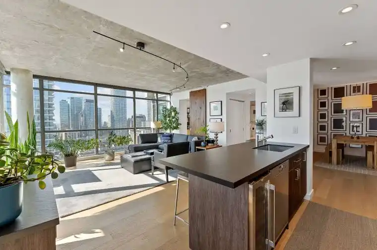 Set in the heart of the village, this 2+1 bedroom, 2 bathroom, 1,184-square-foot suite is waiting for you! As you step inside this rare layout, it instantly feels like home with its warm, earth-tone vibes. The open-concept kitchen and living area are basked in natural light with floor-to-ceiling (9′) windows pulling the sunshine in all day long. At night, you are immersed in the city lights, with an incredible southwest view. The kitchen has been done with thoughtful custom cabinetry, high-end appliances with a gas range, and Dekton countertops, complemented with a textured ceramic backsplash. Extend the cooking to the outdoors with a gas line hook-up for the BBQ, while you take in the east view of Allen Gardens. Back inside, the den makes for a perfect dining room with a custom built-in bar, further adding to the great hosting experience this condo has to offer. Enjoy heated white oak flooring throughout, further adding to the comfort and coziness of this soft, loft-like condo with exposed concrete ceilings. The primary bedroom has south exposure with individual heat control, and a 3-piece ensuite, while the second bedroom has south and west exposure, a large closet, and a custom built-in Murphy bed and cabinets. The suite comes with parking and a locker, and has access to the condo gym, visitor parking, party room, and 24-hour concierge. Steps from the old Maple Leaf Gardens, home to TMU Athletic Centre and Loblaws, the Village, and a short walk to Yonge and Dundas, St. Lawrence Market, or Yorkville. Don’t miss this rare gem!
