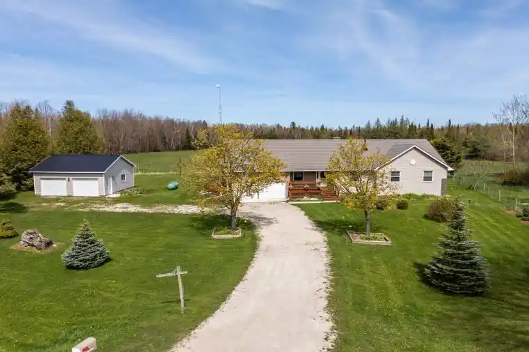 Perfect country property! This spacious and stunning 6-bdrms, 3-bthrms raised bungalow on 1.5-acres offers the perfect blend of comfort, convenience, and income potential.Step inside from the covered front porch to find a welcoming foyer complete with a convenient closet. The home features new vinyl plank flooring and large windows throughout, flooding the space with natural light and accentuating its airy ambiance.The heart of the home lies in the pine living room, boasting a cathedral ceiling and a cozy wood stove insert, perfect for cozy evenings. Galley kitchen with oak cupboards and a bright 3-panel breakfast/dining nook. 4 above grade bdrms, including a primary suite with a walk-in closet and a 4-piece ensuite featuring a jet tub and corner shower. A hallway with a main floor 4-piece bath, two linen closets, and main floor laundry with a double closet adds to the convenience.The fully finished basement suite is complete with its own kitchen, dining area, living room/rec room, office/den, cold room, utility room, 3pc bthrm, & two bdrms. Whether you’re looking for additional living space, a guest suite, in-law apartment, or rental income opportunity, this home offers everything you need. Attached 2-car garage & a second detached 2-car garage/workshop with hydro. Generac generator, HRV system, & aluminum roof.Outside, enjoy the great patio and back deck, perfect for relaxing or entertaining against the backdrop of the serene landscape with the outer lying Osprey Wetland Conservation Lands.Located in a prime spot surrounded by natural beauty with plenty of birds and wildlife and recreational opportunities for every season, this home offers the ultimate country lifestyle. Explore nearby conservation areas, fishing, parks, skiing resorts, and golf courses. Just a 10-minute drive to Dundalk and 25 mins to Markdale, 15 mins to Lake Eugenia, 30-40 mins to Georgian Bay, enjoy the tranquility of rural living without sacrificing convenience.