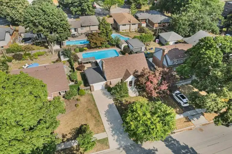 Cameron Road is a hidden gem we’re excited to introduce you to. Lined with well-cared-for character homes, mature trees, and a beautiful streetscape, you’ll be proud to call this neighbourhood home. Built in 1946, 10 Cameron Road includes a range of character-home details, including an all-brick exterior, a front entrance vestibule, and a distinguished yet welcoming presence from the curb. Situated on a 60-foot-wide lot, the property includes a 2-tiered deck overlooking an 18 x 36 inground pool (Boldt)! You’ll love the summer as you and your friends enjoy making memories in the awesome backyard. Once inside, you’ll find a comfortable layout, with the living room on your left, and formal dining room on your right. Across the back of the home is the 3rd bedroom (used as a den), 4-piece bathroom, and kitchen which has views out to the backyard and pool. Upstairs, you’ll find 2 more bedrooms, both large enough to accommodate a king-sized bedroom suite. The basement has a 3-piece bathroom, office area, laundry, and large rec room area. NOTABLES: Furnace & heat pump system (2023); Roof (approx. 2017); Exterior man doors (approx. 2017). Updated flooring through most of main floor & upper floor. Updated vinyl windows through the majority. Visit my website for further information about this listing.
