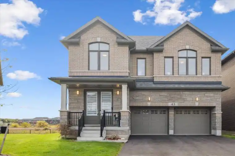 This exquisite, nearly new two-year-old detached residence showcases exceptional craftsmanship, thoughtful upgrades, and modern elegance throughout. Meticulously maintained, the 5-bedroom home is perfectly positioned on a premium pond-backing lot in one of Cambridge’s most sought-after neighbourhoods. The property features an oversized backyard that opens directly onto tranquil green space, offering breathtaking permanent views and ultimate privacy.Step inside to a bright, open-concept main floor designed for contemporary family living. The inviting living room features a cozy fireplace and large windows that flood the space with natural light, creating a warm and welcoming ambience. The main level also includes a spacious library, a formal dining area, and a Selba designer kitchen – a true chef’s delight – complete with a large island, quartz counter tops, upgraded backslash, Bosch gas cook top, built-in oven and microwave, Garburator, and sleek custom cabinetry. Elegant finishes continue throughout, highlighted by smooth ceilings, hardwood flooring, and a custom oak staircase with a titanium stain.Upstairs, the second floor features soft carpeting and a luxurious primary suite with a generous walk-in closet and a spa-inspired 5-piece en- suite showcasing a freestanding tub and glass shower. Modern conveniences include a high-efficiency heat pump, GeneralAire air cleaner, electric car charging point, and a BBQ gas line. The unfinished basement with a rough-in offers excellent potential for future customization.Located minutes from Conestoga College and Highway 401, this remarkable home combines style, comfort, and convenience in a premium setting. Don’t miss your chance to own this move-in-ready residence loaded with builder upgrades and surrounded by nature’s beauty