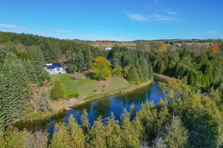 Scenic 2 bedroom raised bungalow on 40 acres with pond, horse barn & workshop. Discover the blend of rural charm and practical amenities with room to roam. The bright and inviting home features an open-concept layout with large windows and sweeping views of the surrounding landscape. Equestrian lovers will appreciate the 3-stall horse barn with a tack shop. The detached 2 car garage with an attached workshop offers plenty of space for vehicles, tools and hobbies-ideal for tradespeople, outdoor enthusiasts, or anyone who values room to work and store equipment. Step outside to enjoy the tranquility of your own private pond. With 40 acres of land, there’s endless opportunity for riding trails, gardening, recreation, or simply enjoying the privacy and beauty of nature. Whether you’re looking to start a hobby farm, enjoy a quiet lifestyle or invest in a well-appointed rural retreat, this one-of-a-kind property is a rare find.
