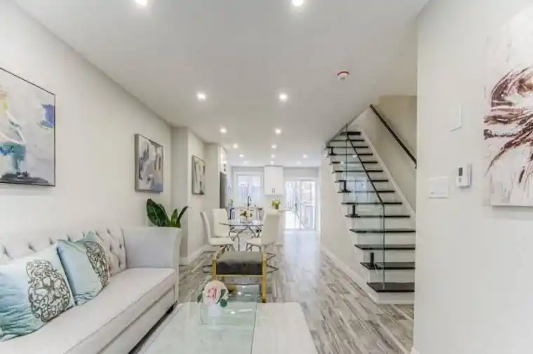 Stunning Fully Renovated Semi-Detached in Prime Forest Hill Location! Welcome to this beautifully updated 2-storey semi-detached home, offering turnkey living in one of Forest Hill’s most sought-after neighbourhoods. Renovated top to bottom, this home seamlessly blends modern design with functional living spaces-ideal for families, professionals, or investors.? Main Features: Bright, open-concept main floor with large brand-new windows flooding the space with natural light Engineered laminate flooring throughout – stylish, durable, and carpet-free Smooth ceilings with recessed LED pot lights Freshly painted in neutral tones, ready for your personal touch Spacious living and dining areas, perfect for entertaining Modern kitchen featuring: Ample white shaker-style cabinetry Sleek quartz countertops & central island Brand new stainless steel appliances??? Second Level: Three generously sized bedrooms with large closets Convenient second-floor laundry room Beautiful 4-piece main bathroom with contemporary finishes Elegant glass staircase railing adds a modern touch?? Basement: Fully finished with a stylish 3-piece bathroom Utility/storage room for added convenience?? Exterior: Fully fenced backyard, perfect for pets, kids, or entertaining Private outdoor space with low-maintenance landscaping?? Prime Location: Located in the heart of Forest Hill, just minutes to: Top-rated schools Parks & community centres Shopping, dining & daily amenities Major highways and public transit for easy commuting Enjoy peace of mind with a completely updated, carpet-free home in a family-friendly neighbourhood. This is the one you’ve been waiting for!