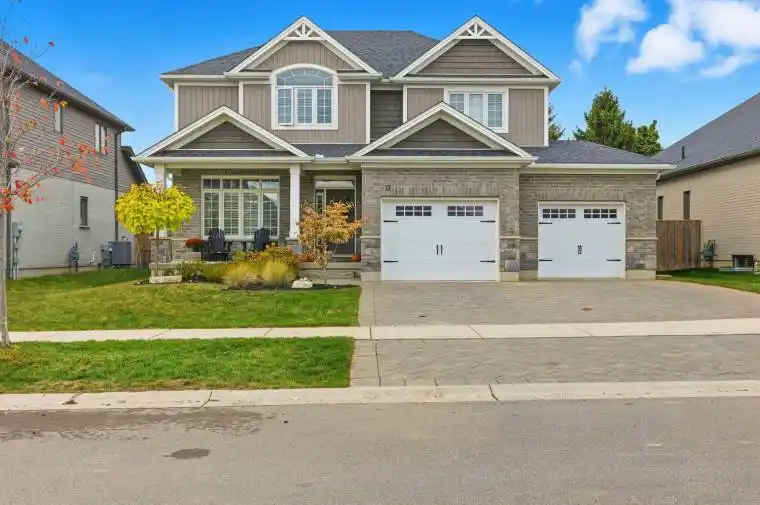 Welcome to 12 Violet Court, an exceptional one-owner, two-storey home built by Sifton, nestled in the prestigious Timberwalk subdivision of Ilderton. Step inside to a spacious foyer that sets the tone for the rest of this meticulously cared-for home. The main floor features a versatile front room that can serve as a formal dining area, home office, or an additional living space – perfectly suited to your family’s needs. The heart of the home is the gorgeous eat-in kitchen, showcasing quartz countertops, high-end stainless steel appliances including a built-in double oven, gas cooktop, and microwave, as well as a large island and abundant cabinetry. Just off the kitchen, the bright and welcoming family room is the ideal space for relaxing or entertaining, featuring a gas fireplace, built-in cabinetry, and large transom windows that fill the room with natural light while overlooking the breathtaking backyard. Step outside and experience your own private retreat – a heated, inground salt water pool with a water fountain and slide, surrounded by professionally designed stone and concrete seating areas perfect for lounging, dining, or hosting summer gatherings. A spacious mudroom/laundry room with inside access to the double garage completes the main level. Upstairs, you’ll find four generous bedrooms, including an oversized primary suite with a walk-in closet and a luxurious 5-piece ensuite featuring a soaker tub, double vanity, and glass shower. The additional bedrooms offer plenty of space for family, guests, or a home office.The lower level is ready for your personal touch, offering an open layout with a rough-in for a 3-piece bathroom – ideal for future finishing. Backing onto a mature treed area, this property provides incredible privacy and tranquility while being just minutes from parks, walking trails, excellent schools, and all of amenities.
