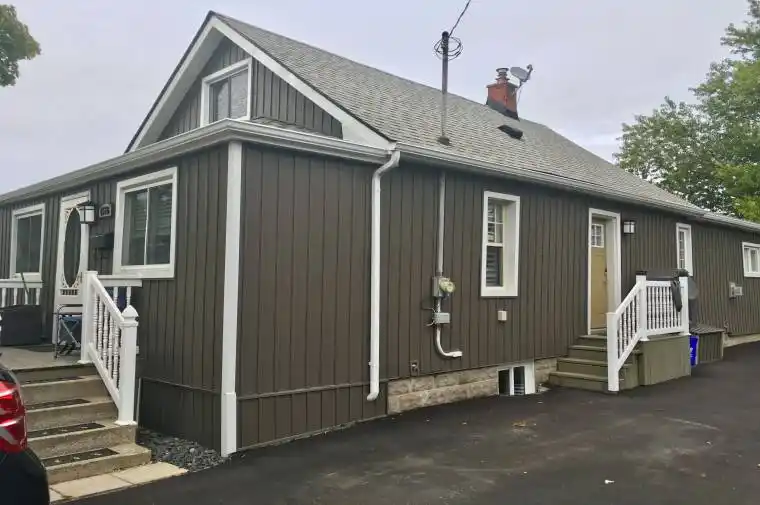 A Little Country in the City! Renovated BUNGALOFT with TWO Bedrooms on the Main Floor and another Larger Bedroom with Walk in Closet and dressing area Upstairs. The upper bedroom can also be used as a Family Room, Den or Guest Bedroom. Currently the two main floor bedrooms are just being used for office and storage. Lovely Mohagany Kitchen with plenty of cabinets, extended countertops and built in pantry. Gas stove for the chef in your family who loves to cook and a Built in Dishwasher helps cleanup. Colonial Doors and Trim, High Ceilings, Custom Blinds and Pot lights modernize this well lit space. Main Floor Laundry is conveniently built right into the Bathroom and this home includes Central Air Conditioning and has efficient Gas Forced Air Heat. Tenants space is the about 2/3 of the total square footage and Tenant Pays 2/3 of utilities as shared with a single owner – lives in separate attached (semi like) unit at rear. Paved Parking and Exterior Maintenance , Grass Cutting and Snow Shovelling are all included in the Rental. Your own Bungaloft home and yard without the maintenance and upkeep of a house …easy to apply, just ask Patrick for an Application. Tenant to Provide Identification with Completed Application and Proof of Income, History and References and current Credit Report. First and Last Required,