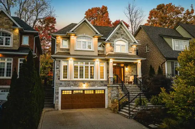 Situated in prestigious Olde Dundas on a private ravine lot with panoramic views of Sydenham Creek and the surrounding conservation, this solid-stone Neven-built residence combines timeless craftsmanship with refined luxury. Inside, smooth 10-foot coffered ceilings, intricate custom millwork, and hardwood floors flow through the open-concept design. The chef’s kitchen, featuring a gas Viking stove with built-in ovens, anchors the main level and opens to elegant living and dining spaces framed by oversized windows overlooking the forest. Upstairs, two primary suites each offer a spa-inspired ensuite and walk-in closet, ideal for extended family or guests. A dumbwaiter provides seamless service between levels, while thoughtful finishes such as a heated double garage and concrete driveway, backyard walkway, and rear patio reflect quality and durability throughout. The fully finished lower level includes a bedroom, full bath, recreation area, and separate access, perfect for guests, in-laws, or a future suite. Set on a quiet cul-de-sac, just moments from trails, top-rated schools, and the historic charm of downtown Dundas.