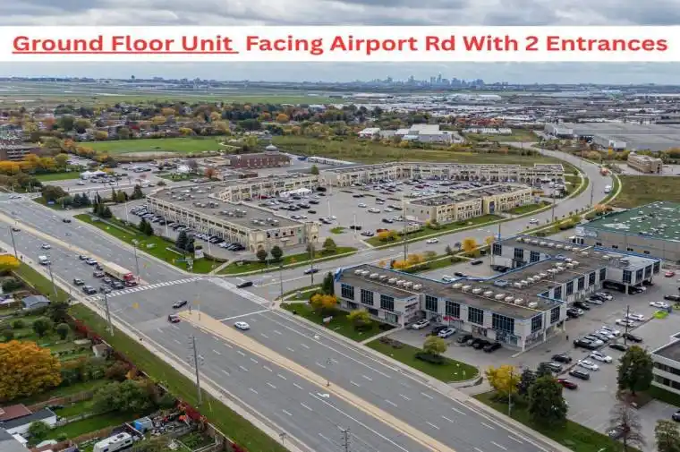 Attention All Professionals Looking To Start Your Own Business, Your Search Ends Here. Rare opportunity to own a GROUND FLOOR commercial unit with 2 entrances (front & back) in a prime location FACING AIRPORT ROAD. This unit features high ceilings with a welcoming reception & waiting area, 6 Offices, washroom, a separate kitchenette, excellent exposure, and easy access for customers and deliveries. Centrally located steps to public transit, just minutes to Toronto Pearson Airport and major highways like 407, 401, 427 & 409. Current zoning permits a wide range of uses making this a fantastic opportunity with endless possibilities. Extremely Clean & Well Kept. Great opportunity for investors or owner-users in a high-demand commercial corridor. Must See… 1275 sq ft gross including common areas. For accuracy Buyer or Their Agent To Confirm Total Area/Retail Area, Taxes, Maintenance Fees And Permitted uses. Plenty of parking. BONUS: Seller willing to lease back 3 offices.