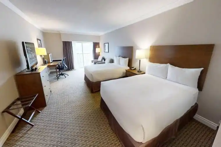 DEERHURST RESORT – BAYSHORE COMPLEX LOOKING OVER PENINSULA LAKE – Top floor waterfront condominium located in the Bayshore complex at Muskoka’s premier resort – Deerhurst Resort. This waterfront unit offers a great view over Peninsula Lake and is steps away from the beach. Inside the unit, you will find a large great room with two queen beds, a sitting area, a flat-screen TV, a bar fridge, and a full bathroom. The unit is on the rental program, with the resort providing revenue to the unit owner. For 2024, the owners’ share of revenue was $14,360. The monthly condo fee is $563.30 plus HST (HST should be recoverable), and the annual property tax of $1597. Enjoy the resort lifestyle – golf, beach, pools, tennis, trails, restaurants, and more. HST is applicable to the sale of this unit and is recoverable. The unit is a large hotel room; all Bayshore units must be kept on the rental program with the resort. Great unit – Great location and an amazing resort! Live, vacation and invest in Canada!