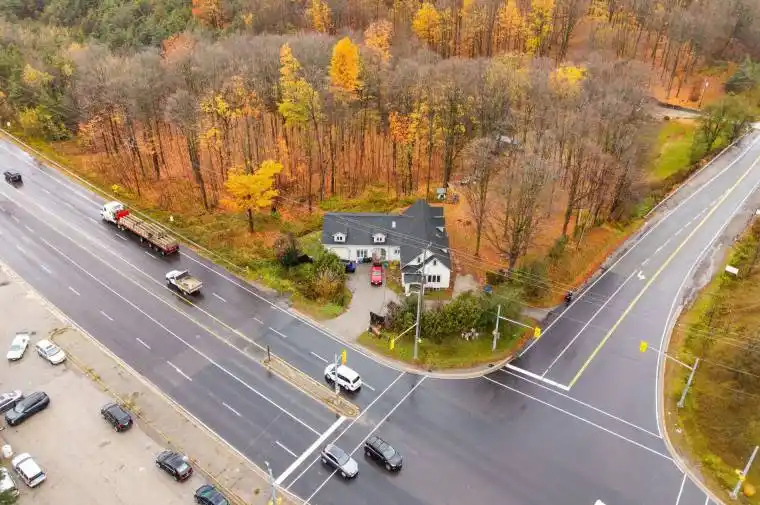 Great opportunity and investment potential. Located at the busy & highly visible location at the northwest corner of Highway 9 & Tottenham Road, this lot is approximately 150 feet x 225 feet (.8 acres). The property features a detached home offering 3 residential units. The main unit features spacious foyer, updated kitchen with tile floor & backsplash, french doors open to living room with laminate flooring and upper level features 4 bedrooms, one with walkout to balcony and separate den with skylight. There is a side entrance to main floor 1 bedroom unit, full kitchen, 3 piece bathroom and private deck. The 3rd unit at garage offers 2 bedrooms, bathroom and full kitchen. The property features 2 furnaces, two air conditioners.