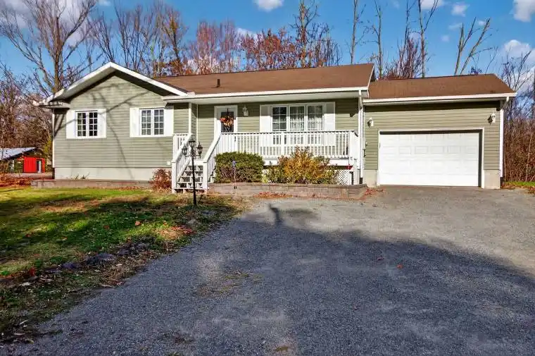 Discover a great opportunity to own this charming home nestled in a quiet community. This inviting property offers 2 bedrooms and 2 bathrooms, along with an attached garage for added convenience. The formal living room features beautiful hardwood floors and a large picture window that fills the space with natural light. Enjoy the open-concept kitchen with plenty of cupboard space, overlooking the dining area and cozy family room with a warm gas fireplace – perfect for relaxing or entertaining. Step through the garden doors onto a spacious deck, ideal for gatherings with family and friends. The primary bedroom includes a 3-piece ensuite, while the main floor laundry adds everyday practicality. The partially finished lower level features a large recreation room and hobby/play area, offering great potential for future development. Just a hop, skip, and a jump from a nearby boat launch, at Newboro Lake where you can enjoy kayaking, fishing, and boating – the perfect blend of comfort and outdoor living!