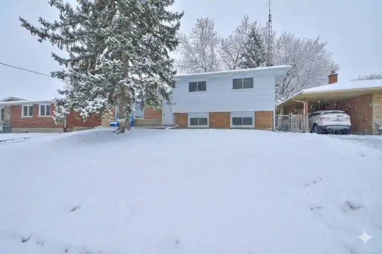 The Perfect Family Home for the Growing Family!This spacious split-level home offers 3+1 bedrooms and 2 baths, thoughtfully designed for comfort and functionality. The main level features a bright eat-in kitchen with a breakfast/coffee bar, updated cabinets, granite countertops, and 2025 appliances, along with a welcoming living room complete with hardwood floors and a cozy gas fireplace-perfect for family gatherings and holidays. The upper level offers three bedrooms and a full 4-piece bath, while the lower level provides even more living space with a fantastic family room featuring built-in cabinets and shelving, plus an additional bedroom. The basement includes an office/games room, a 3-piece bath, and a laundry/storage area. Notable updates include a heated detached concrete block 2-car garage with bonus room at back (has its own hydro metre separate from the house), furnace (2007) with updated heat exchanger (2017), A/C (2024), gas fireplace and 4-piece bath (2016/17), windows (2022), house roof and eaves (2016), and garage roof (2021). Conveniently located across the street from Peace Bridge Village Public School and within walking distance to Our Lady of Victory Catholic School & FEIA and just a short drive to shopping, major highways, and the Peace Bridge.