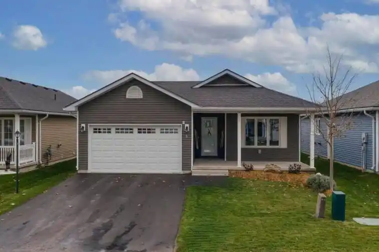 When proximity to Lake Huron sunsets, the beach, and community matters, wait no longer! This Lakeside with sunroom model is located in The Bluffs on Huron, offering a full crawl space for storage and a range of upgrades no longer available in later builds. The foyer is a welcome entrance with space right off the attached 2 car garage and main door where you have a full sized closet, room for an entrance table and bench to take your footwear off. A crisp white kitchen dazzles the critical eye featuring quartz countertops including the island and a custom oversized side table/hutch with matching quartz. Additional highlights include upgraded appliances, a pantry, crown moulding, pots-and-pans drawers in the island, undermount lighting, tiled backsplash, an oversized kitchen window, and a glass corner cabinet. The living room is a welcoming room with a gas fireplace with a tile inset, the perfect spot for snuggling in on the chilly evenings. The sunroom is a fantastic space for a second sitting room or alternative dining space. Take note of the upgraded interior doors and custom blinds which elevate the feel of the home.The Lakeside with Sunroom layout offers a generous guest bedroom and a main bathroom positioned at the front of the home. The privately located primary suite includes an ensuite with a 5′ shower and a spacious walk-in closet. Outdoors, relax on the deck or install a hot tub on the concrete pad between the deck and garage, both with privacy fencing. Residents enjoy access to an 8,000-square-foot clubhouse featuring an indoor pool, gym, sauna, gathering rooms, and stunning views of Lake Huron, as well as pickleball courts and a dog park. All of this is just minutes from Goderich and local golf courses.
