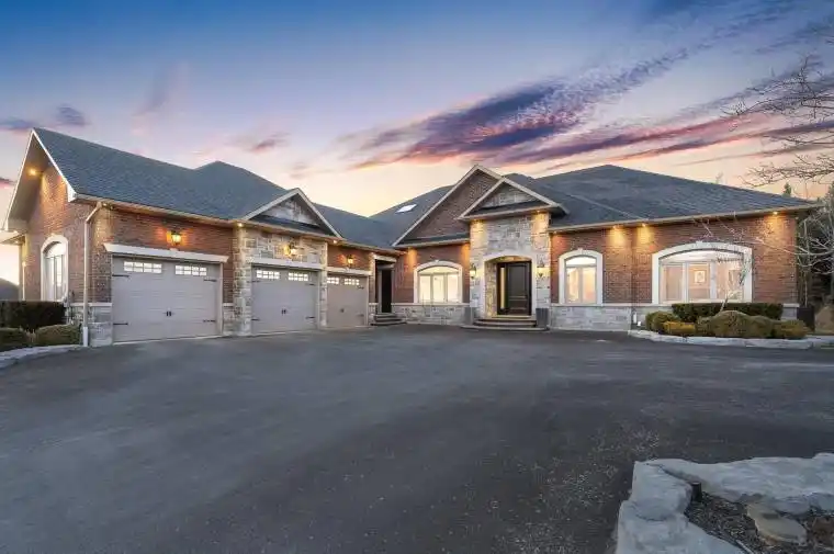 Top 5 Reasons You Will Love This Home: 1) Executive, custom-built bungaloft in an exclusive estate neighbourhood, perfectly positioned and backing onto greenspace for ultimate privacy 2) Exquisite attention to detail and design with coffered ceilings, wainscoting throughout, and high-end finishes at every corner including a Sonos speaker system running throughout the home including the exterior as well 3) Extensive landscaping featuring a sparkling inground saltwater pool with a new liner, a convenient outdoor bathroom, a covered concrete porch, an inground sprinkler system, an e collar dog fence, and an abundance of tranquility for outdoor relaxation or entertaining 4) Opulent primary suite boasting two oversized closets and a spa-like ensuite, thoughtfully designed for indulgent relaxation 5) Loft showcases a media room, while the impressive seven-car garage features a lift, offering endless possibilities for storage, entertainment, or a dream workspace. 4,578 sq.ft. plus an unfinished basement. Age 11.