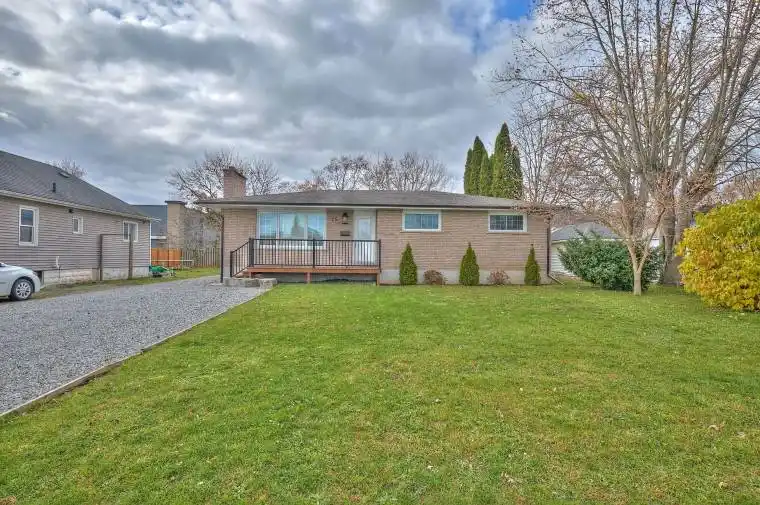 Solid all-brick bungalow with many upgrades and over 1,200 square feet on the main level and a layout that offers both comfort and potential. This 3-bedroom home features a bright kitchen with a dining area and sliding doors leading to a sunroom, and complete with additional sliding doors to the backyard. The spacious living room includes a cozy wood-burning fireplace and large front window, while the main floor also offers a full 5-piece bathroom and three generously sized bedrooms, ideal for main-level living. The basement is a clean slate with a partially finished layout that includes a large recreation area, laundry room with sink, a roughed-in 3-piece bath that currently has a working toilet, roughed-in kitchen, and a separate side entrance, making it a great candidate for a future in-law suite. Recent updates include new windows, kitchen, bathroom and main-level paint, trim and flooring (2021), high-efficiency furnace (2018), eavestroughs(2019), and garage roof and door (2021). Outside, enjoy a charming front porch, double-wide driveway, and a detached 2-car garage on a partially fenced lot with lawn space perfect for kids, pets, or backyard entertaining. It is conveniently located within walking distance to all amenities, Niagara College, multiple plazas with shopping, fast food, public transit, and schools, and minutes to the Welland Canal, Seaway Mall, Welland’s commercial district, and easy access to the Hwy 406. A great opportunity for families, investors, or first-time buyers looking to settle in a revitalizing neighbourhood.