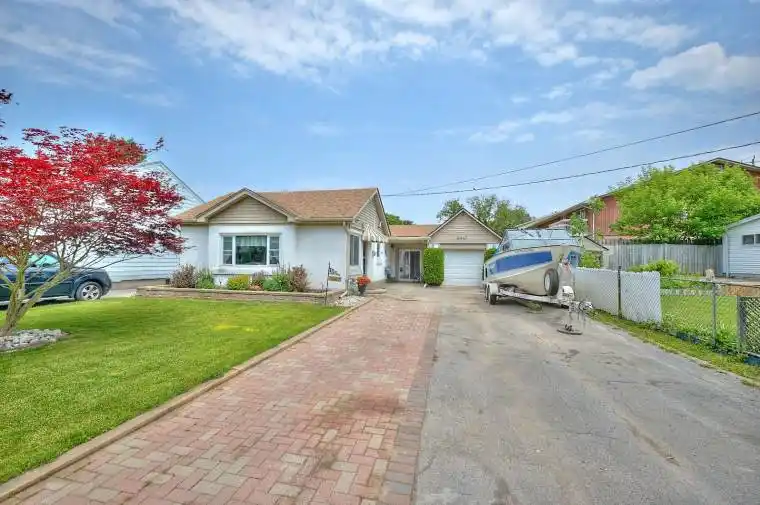 Welcome to this extremely solid and well built bungalow constructed in 1954 that is situated on a large lot on a quiet, desirable street in Niagara Falls a short distance to shopping, amenities, schools, parks and a major highway. This custom built home offers 1092 sqft which includes a spacious living room plus separate dining room (living and dining room just painted Sept 2025) and large updated kitchen w/maple cabinetry. The 3 pc bath has been recently updated w/a beautiful tiled shower and newer fixtures. There are two bedrooms, one offering garden doors to the fully fenced backyard. The layout continues with a generous family room with vaulted ceilings and wood burning stove (also perfect as a majestic Primary bedroom) with sliding doors that lead out to the rear yard. Enjoy the extra space of the breezeway which offers sliding doors that walk-out to the front of the property to a built-in covered patio. The attached single garage has inside access. The backyard is a private, sweet retreat w/interlock brick patio, and huge 12X16 shed/workshop w/hydro. The expansive driveway holds 6 cars and is perfect for parking your toys, trailers, or weekend wheels. Check out video tour!