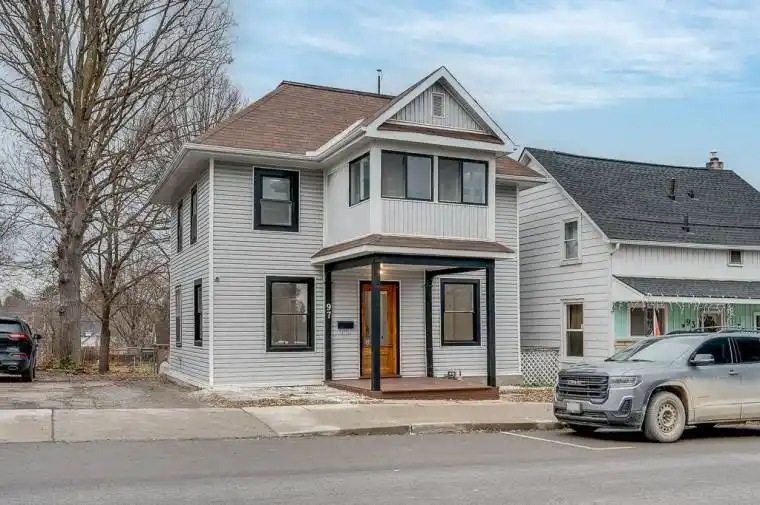 Fantastic opportunity in the heart of downtown Arnprior! Welcome to 97 Madawaska Street, a fully renovated, move-in-ready 3-bed, 2-bath detached home directly facing Arnprior Town Hall. Featuring high-end modern finishes and zoning that permits certain commercial uses, this versatile property is ideal for buyers seeking a stylish residence with the option to run a home-based, client-service business right where they live. Step inside to a bright and inviting main level with three separate living spaces, offering endless possibilities for a home office, consulting room, playroom, studio, bedroom, or formal dining area. The updated 3-piece bathroom adds convenience, while the brand-new eat-in kitchen showcases stainless steel appliances, modern finishes, and a side-door entrance – perfect for pets, deliveries, or unloading groceries with ease. Upstairs, the thoughtful layout shines with a spacious family room, two comfortable bedrooms, and a second new 3-piece bathroom with stacked laundry. The south-facing sunroom is a standout feature – warm, bright, and ideal for morning coffee, hobbies, reading, or a sunny work-from-home nook. The exterior offers a manageable lot with room for parking, gardening, outdoor dining, or a future deck, plus a charming covered front porch that enhances curb appeal and permits year-round outdoor enjoyment. A full-height unfinished basement offers excellent storage space or workshop potential. Set in an unbeatable downtown location, this home is just steps to shops, restaurants, parks, schools, local services, and the Ottawa and Madawaska Rivers, giving it exceptional walkability and small-town charm. With all major updates already completed, this property delivers incredible value for buyers seeking polished turnkey living with built-in flexibility. Move in, set up, and enjoy – schedule your showing today!