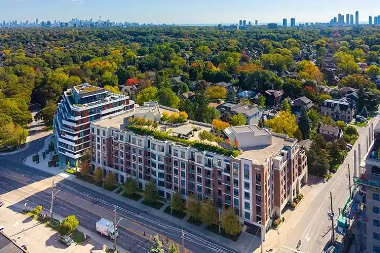 Welcome to this exceptional 1255 sq ft residence, perfectly situated in an exclusive boutique building that offers comfort, style and a truly refined lifestyle. This spacious 2 bedroom plus den suite features elegant hardwood floors throughout, 9 foot ceilings, and a thoughtfully designed layout ideal for both everyday living and entertaining. Enjoy a bright kitchen with space for casual dining, opening seamlessly to the main living area. The separate den provides flexible options for a home office, guest room or creative space. The primary bedroom is well proportioned, offering a walk-in closet and large ensuite bath with glass shower, bathtub and double sinks. The second bedroom is located at the other end of the suite, with an adjacent 3 piece bath offering both comfort and privacy. Two separate walkouts lead to a private covered terrace where you can relax, dine, or entertain while taking in the serene garden views-your own peaceful oasis in the city. The Essence offers a 24 hour concierge, gym, sauna, party room, rooftop deck with bbqs, car wash, as well as underground visitor parking for your guests. Steps to Shopping, boutique stores, restaurants, the walking and bike paths along the Humber River, easy access to the Bloor subway, Humbertown Plaza. With boutique luxury, beautiful natural surroundings, and an inviting layout, this Kingsway condo is waiting for you!