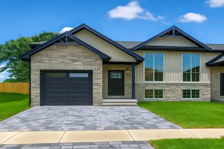 Welcome to this stunning brand-new semi-detached raised ranch home, designed for contemporary living. This spacious residence features 2 bedrooms on the main floor and 2 additional bedrooms in the lower level, offering ample space for family and guests, along with 3 full bathrooms for convenience. The full lower level is a standout feature, showcasing 9-foot ceilings and large windows that create a bright and inviting family room perfect for relaxation and entertaining. The single attached garage provides direct access to the foyer, while the beautifully designed interlock brick driveway enhances the homes curb appeal. At the heart of the home, you’ll find a stylish kitchen complete with quartz countertops, abundant cabinetry, and an island that seamlessly connects to the living room, making it ideal for gatherings and everyday living. Retreat to the primary bedroom, which boasts its own ensuite with a luxurious tile shower and a spacious walk-in closet, ensuring comfort and privacy. Conveniently located near amenities, this home also comes with a Tarion home warranty for your peace of mind. Don’t miss the opportunity to make this exceptional property your new home!
