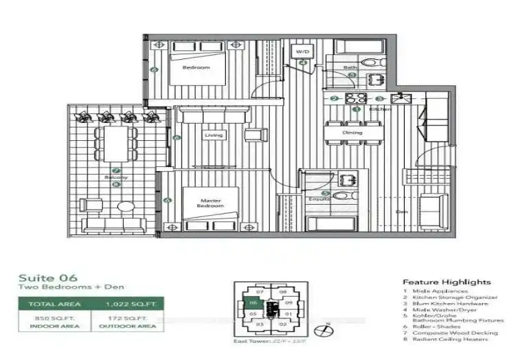 Saisons Condo in North York. Southwest view Split 2 Bedroom+ Den, 2 Bathroom unit offers stunning views, Built in Miele appliances, and advanced amenities including an 80,000 square-foot MegaClub. This Suite features 9 ceilings, wide-plank laminate flooring, Roller blinds, smart thermostats, and custom cabinetry. 8-acre park, Community Centre, and Close To Public Transportation Subway, Go train, 401, 404.Extras: