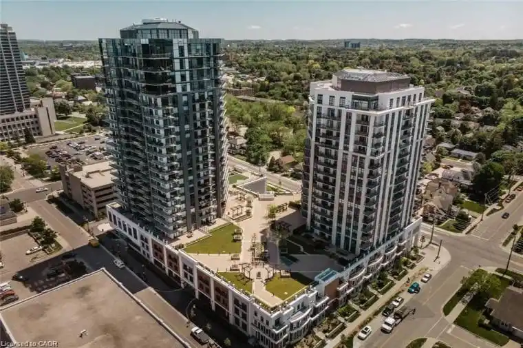 AVAILABLE FEBRUARY 1ST. Welcome to Suite 1804, a stunning sub-penthouse residence at 144 Park Street in the heart of Waterloo. This spacious two-bedroom plus den, two-bathroom condo offers 1,032 square feet of thoughtfully designed living space. The open-concept layout is both stylish and functional, featuring crisp white shaker-style cabinetry, stainless steel appliances, engineered hardwood flooring throughout the living areas and bedrooms, and impressive 10 ft ceilings. Large windows flood the suite with natural light, creating a bright and inviting atmosphere ideal for both everyday living and entertaining. Residents of 144 Park Street Condominiums enjoy an exceptional collection of amenities, including a sun-filled fitness centre, concierge service available seven days a week, and an expansive 8,000 square foot rooftop terrace complete with BBQs and seating areas. Additional amenities include a modern party room with a demonstration kitchen, a theatre and media room, a resident lounge, two guest suites, and a furnished meeting lobby. Perfectly situated with the LRT right at your doorstep and just steps to Uptown Waterloo, this location offers easy access to premier dining, shopping, and local favourites such as Vincenzo’s, The Bauer Kitchen, and Red House. Some photos have been digitally enhanced. Opportunities like this are rare. Schedule your private showing today and experience elevated condo living at Suite 1804.