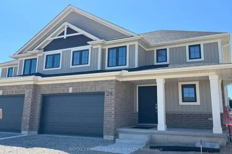 Welcome to 24 Harrow Lane! The Elmwood model is a 1,520 sq. ft. semi-detached two-storey with a 1.5-car garage, designed for comfortable family living. A spacious foyer, main-floor powder room, and open-concept kitchen, dining, and great room create an inviting, functional layout, finished with luxury vinyl plank flooring, granite countertops, and a tiled backsplash. Upstairs offers three generous bedrooms, a 4-piece bath, and a primary suite with a walk-in closet and private 3-piece ensuite. The unfinished basement includes a laundry area, rough-in for a 4-piece bath, and space for a rec room or fourth bedroom. Located in southeast St. Thomas near parks, trails, schools, and within the Mitchell Hepburn School District, this Energy Star Certified, Net Zero Ready home is move-in ready. Don’t hesitate – Make 24 Harrow Lane your new home today!