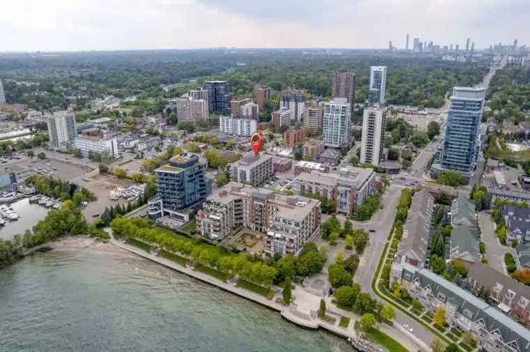 In the vibrant heart of Port Credit, discover a residence that transcends everyday living with lake views from your balcony. More than a home, 70 Port St #410 is a refined sanctuary where elegance, comfort, and community converge. This boutique address offers an intimate living experience, away from the hustle and bustle of larger condo buildings. Its serene character contrasts beautifully with the lively energy of Port Credit just beyond your door, bustling with life and energy. Offering a level of space not always attainable in condominium living, this well thought out design and floor plan allows for lake views and a coveted South East exposure to be enjoyed on two balconies and floor to ceiling windows. Step inside and be welcomed by a residence designed for both style and substance. Gleaming hardwood floors glistening with the morning sun. Generous rooms create an effortless flow for entertaining and relaxation, while abundant storage and thoughtful design elevate convenience. A beautifully renovated eat-in kitchen anchors the condo, with updates top to bottom. The spacious living/dining room is complemented by a versatile den, which could be using as a formal dining room, a home office, or a place for overnight guests. The primary ensuite bathroom is the essence of timeless charm, complete with Restoration Hardware cabinetry and updated tiles. Every detail has been carefully curated. The backdrop of the Port Credit location is the second shining star here. Literal steps to the waterfront, not only can you seethe lake from your unit but you can be down there to enjoy the views in moments. Catch a coffee with friends, or dinning with your special someone – Port Credit is as much about lifestyle as it is about location. The GO Train is walkable, and is your access point to downtown concerts or shows. Come and enjoy everything Port Credit living is all about. This home is not simply a place to reside it is an invitation to indulge in boutique luxury.