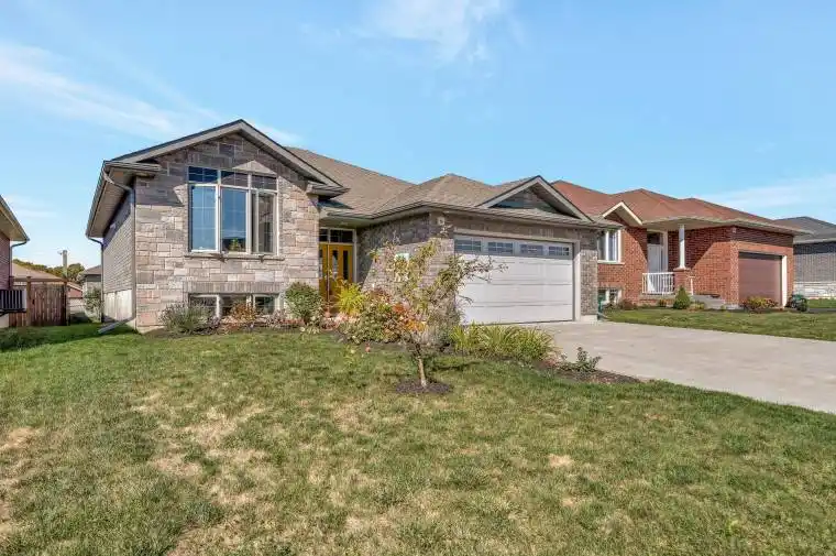 Offering 5 bedrooms and 3 bathrooms, this move-in-ready bungalow showcases thoughtful upgrades, meticulous care, and a seamless blend of style, comfort, and everyday functionality. Step into a sun-filled, open-concept main floor where the family room-anchored by a tray ceiling with pot lights-flows effortlessly into the dining area and chef-inspired kitchen. The kitchen impresses with terrazzo-quartz countertops, a composite granite double sink, premium cabinetry, and a stylish tile backsplash-perfect for entertaining or daily living. The main-floor primary suite is a true private retreat, featuring a spacious custom walk-in closet and a spa-like ensuite with a double vanity, his-and-hers sinks, and a sleek stand-up shower. Downstairs, the bright and expansive lower level extends your living space with a large rec room, a full bathroom, and three generous bedrooms, including one with its own walk-in closet-ideal for guests, teens, or a growing family. Outside, enjoy a deep, fully fenced backyard (2021) designed for relaxation and entertaining, complete with a composite deck, three-panel patio doors, stamped concrete patio, and ample green space. The triple-wide concrete driveway and insulated double-car garage provide exceptional parking and storage convenience.Notable upgrades include custom living room cabinetry (2021), front landscaping (2023), and a refreshed kitchen backsplash (2024). Located in a highly sought-after neighborhood close to schools, parks, shopping, CFB Trenton, and Hwy 401-and just a short drive to Sandbanks, Presqu’ile, and North Beach Provincial Parks-this home is perfectly suited for families, professionals, and outdoor enthusiasts alike. A rare opportunity to own a beautifully finished home in an unbeatable location-don’t miss it.