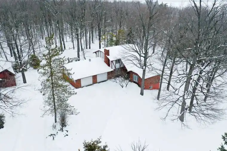REMARKABLE CUSTOM BUILT HOME ON PRIVATE 2.5 ACRES. Discover the perfect blend of country living and modern convenience in this stunning custom built home tucked away on a peaceful, treed property. Step inside to discover a thoughtfully designed layout, with light filled living areas, country kitchen with eat in area and plenty of storage, separate dining with patio doors leading to a screened in 3 season sunroom. The main level also features convenient laundry room, 2 pc powder room and direct access to garage. Expansive windows throughout fill the home with natural light and offer beautiful views of the surrounding property. Second floor provides a tranquil escape with 3 bedrooms and 4 pc main bath. Primary suite with spacious ensuite, closets and built in dressers. Downstairs, a recently finished basement adds exceptional versatility with two additional bedrooms, a spacious family area with fireplace, and a walkout to the garden patio. Bonus lower sunroom is awaiting your creative finishing touches. Outside, the stunning private yard is a true highlight, surrounded by soaring maple trees, winding trails, and a serene pond. Car enthusiasts and hobbyists will appreciate the 27′ x 32′ heated attached garage with an equally sized basement workshop below, offering ample space for projects and storage. For added charm, the detached 24′ x 18′ Sugar Shack garage comes complete with maple syrup equipment. Quick possession available. Truly a one of a kind property; spacious, serene and ready to welcome you home.