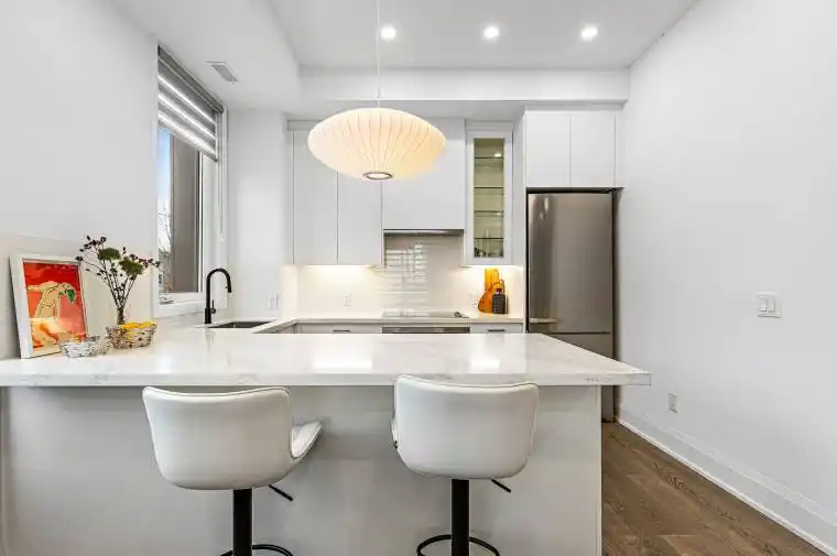 This luxurious end-unit townhouse in the esteemed Bayview Village community showcases sophisticated design and exceptional indoor-outdoor living. The 4-bedroom, 4-bath home boasts 10-ft ceilings on the main floor, wide-plank hardwood floors, pot lights, high baseboards, and a spacious open-concept layout perfect for contemporary lifestyles. The chef’s kitchen is equipped with top-of-the-line Miele appliances, quartz countertops, and a custom backsplash, seamlessly connected to bright living and dining areas featuring built-in speakers and an electric fireplace. The primary suite includes a spa-like 5-piece ensuite with marble finishes, a walk-in closet, and a bay window. Two expansive outdoor spaces make this home truly unique: a 335 sq ft rooftop terrace designed for entertaining and a 215 sq ft walk-out patio garden ideal for everyday use. Additional features include custom privacy window film throughout (eliminating the need for curtains), a tankless hot water system, air exchanger, gas hookups for a BBQ and heater, tinted windows, and direct access to two underground parking spaces. Conveniently located steps from transit, schools, Bayview Village Shopping Centre, and just minutes from Bessarion Station, Highway 401, and North York General Hospital. Partly furnished with master room bed and mattress, living room sofa and living room cabinet.