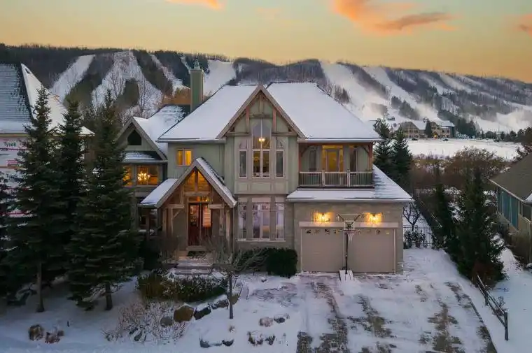 Cherished by the same family for over 15 years, this spacious 7-bedroom, 5-bath Lake Louise model in the sought-after Orchard community is ready for its next owners. Ideally located within walking distance to Craigleith Ski Club and Toronto Ski Club, and just minutes from Alpine, Blue Mountain Resort, and Northwinds Beach, this property offers exceptional four-season living. With over 4,000 sq. ft. of finished space, the home is designed for gathering and relaxation. The dramatic great room features a double-height ceiling, hardwood floors, beam accents, and a stunning double-storey stone wood-burning stove with a pine mantel. The main floor includes a guest bedroom, a 3-piece bathroom with a steam shower, a large kitchen with granite counters, gas range, island, walk-in pantry, and buffet/serving area, plus a cozy sitting area. The mudroom serves as main-floor laundry and opens to a covered BBQ porch.Upstairs you’ll find four generous bedrooms and three full bathrooms, including a primary suite with a walk-in closet and ensuite featuring a soaker tub and glass shower. One guest room includes a private ensuite, another offers a balcony, and a full bath plus walk-in linen closet complete this level. Seasonal ski-hill views can be enjoyed in winter, with lush privacy in summer. The fully finished lower level adds two more bedrooms, a bathroom, sauna, two recreation areas, and excellent storage for gear.Outside, the premium lot backs onto Craigleith Ski Club and features mature landscaping, apple trees, a play set and swings, and a gate leading to a walking path directly to the club. A double-car garage with EV charger completes this exceptional offering. A rare opportunity in an unmatched location.