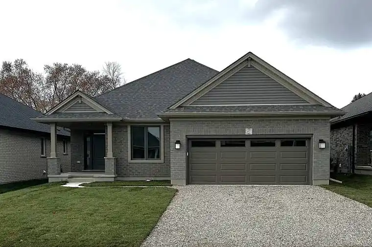 Crafted by Hayhoe Homes, the ‘Ashbrook’ bungalow is located in Tillsonburg’s desirable Northcrest Estates and offers 2 bedrooms, 2 bathrooms, and a double-car garage. The open-concept main floor features 9-foot ceilings, hardwood and ceramic tile flooring (as per plan), a welcoming foyer, and a designer kitchen with quartz countertops, stylish backsplash, large island, and walk-in pantry, flowing seamlessly into the dining area with patio door to a partially covered rear deck and a bright great room with large windows. The primary suite includes a walk-in closet and private ensuite with double sinks and shower, while a second bedroom and full bathroom round out the main floor. The partially finished basement provides extra living space with a finished family room and development potential for an additional bedroom and bathroom. Additional highlights include convenient main-floor laundry with bench and garage access, hardwood stairs, central air & HRV, Tarion New Home Warranty, plus many upgraded features throughout. Located close to shopping, dining, schools, parks, trails, and easy access to Hwy 401. Taxes to be assessed.