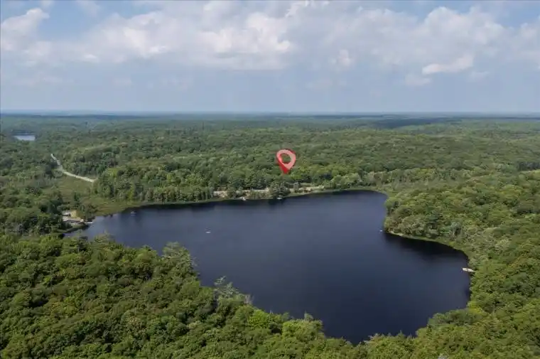 Welcome to your beautiful year-round home that perfectly balances comfort, privacy, and natural beauty. Nestled on nearly an acre of landscaped property, this meticulously maintained, move-in ready 3-bedroom home offers stunning panoramic views of the surrounding forest and owned waterfront on Frau Lake. Designed for everyday living, the open-concept layout features soaring beamed ceilings, a bright family room, and a newly refreshed eat-in kitchen with thoughtful finishes. The primary suite is a true escape with a large bay window framing the peaceful lake views and a walkout to the backyard for easy access to quiet mornings or starlit evenings. Nearly every room captures a connection to the outdoors, creating a seamless flow between interior and exterior spaces. Step outside to enjoy the extensive yard featuring a stone walkway, firepit area, and a 28 x 16 ft detached workshop with its own electric panel, perfect as a work space or for hobbies and storage. The attached garage and dual driveways offer ample parking for guests and recreational vehicles alike. Recent updates ensure peace of mind, including a new roof (2025), septic (2021), electrical (2021), bathroom renovation (2022), primary bedroom renovation (2023), garage door (2023), kitchen updates (2025), and new eaves, fascia, and soffits (2025). While the home itself offers privacy and comfort, you’ll also enjoy direct access to tranquil Frau Lake- a private lake ideal for swimming, paddling, fishing or simply soaking in the views from your own sandy shoreline. Located just 8 minutes from Highway 11 and downtown Bracebridge, this property combines the best of modern living, peaceful surroundings, and small-town charm.