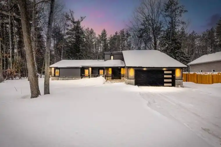 This true ranch-style bungalow offers effortless, stair-free living with oversized sliding glass doors stretching across the family room, framing views of a large, fully fenced backyard that backs directly onto 56 acres of Crown land. With no rear neighbours, this is a rare setting where privacy, nature, and everyday convenience meet.The home offers over 2,300 sqft of living space on a generous 100′ x 200′ lot. An oversized garage with inside entry, paired with an open concept layout, makes this an ideal forever home. Outdoor enthusiasts will love the location- snowmobile trails just down the road, Marlwood Golf Course across the street, nearby hiking/snowshoeing trails and the world’s longest freshwater beach only a 7-min drive. The primary bedroom is a true retreat, featuring vaulted ceilings, a cozy fireplace, sliding doors leading directly to the rear deck, and a high-end ensuite complete with a glass shower, floating soaker tub, and walk-in closet.The home has undergone extensive renovations throughout, including a brand new roof, soffits, fascia, exterior siding, windows, garage doors, and a new high-efficiency furnace with in-floor heating. Electrical, lighting, pot lights, and all interior flooring have been fully updated.The renovated kitchen showcases quartz countertops/backsplash, oversized island, custom cabinetry with pull-out organizers, a dedicated coffee bar, a built-in full-size wine fridge, and all new stainless steel appliances. Every bathroom has been fully renovated with modern fixtures and finishes.Upgrades include expansive new rear sliding doors, custom blinds, upgraded main-floor laundry with inside entry to garage, loft with a full bathroom and second family room with new TVs, an updated fireplace with custom built-ins, cathedral ceilings, skylights, and brand new tiered decks spanning the entire back of the home. The property is fully fenced with custom stone walkways, creating a private outdoor retreat you’ll enjoy year-round.