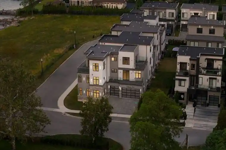A rare opportunity to lease an exceptional waterfront home just steps from the lake and marina. This impressive three-storey residence offers over 5,000 sq. ft. of bright, well-designed living space with beautiful lake views from multiple levels. Ideal for family living, the home features 6 bedrooms, 7 bathrooms, and two full kitchens, making it perfect for a larger or multigenerational household. The main level includes a welcoming foyer, formal dining area, private office, and a spacious family room filled with natural light and lake views. Hardwood and porcelain tile flooring run throughout the home-no carpet-making it easy to maintain. The kitchen is thoughtfully designed with custom cabinetry, quartz countertops, and stainless steel appliances, offering both function and style. Upstairs, generously sized bedrooms each include private ensuites and balconies overlooking the water. The primary suite offers a spa-like five-piece ensuite and a large terrace, ideal for enjoying lake sunsets. The third level provides additional bedrooms, a loft with wet bar, and flexible space for work or relaxation. The finished lower level includes a second kitchen, recreation room, full bathroom, and bedroom-ideal for extended family or guests. Professionally landscaped grounds feature a stone interlock driveway and a three-car garage. Walking distance to the waterfront, marina, schools, and shops. All utilities to be paid by the tenant. Ideally suited for a responsible family seeking a long-term lease in a premium lakeside setting.