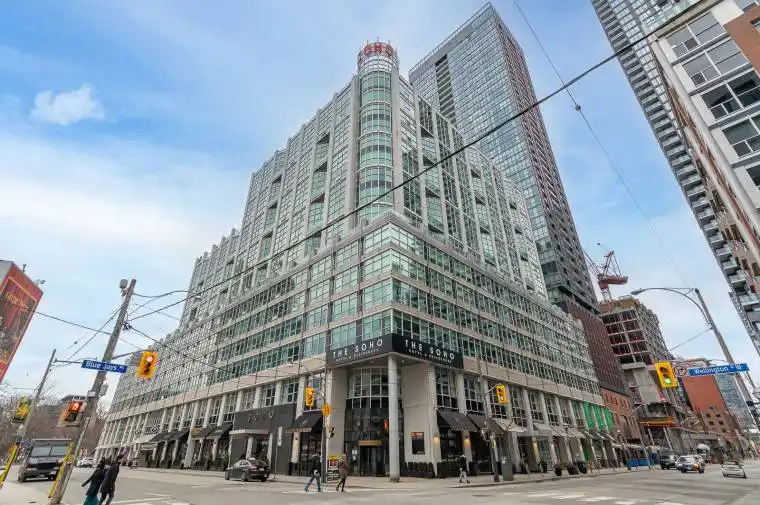 1 bedroom 1 bath Condo above a 5-star Boutique Soho Metropolition Hotel in the Entertainment District connected to Morretti Cafe, Restaurant & Bar, steps to the path, Financial and Fashion Districts, Rogers Centre, CN Towers, Shopping, with 24 hrs TTC at the doorstep-easy access to Gardiner. Amenities include a Fitness Centre, Steam room, indoor pool, 24-hour concierge, and a Rooftop terrace with BBQs. Walk Score 100!