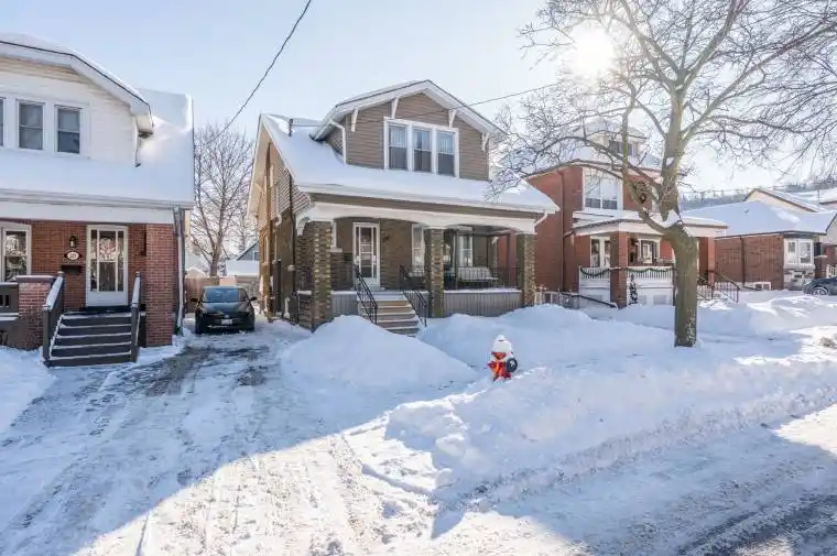 Gorgeous Century Home in a Prime Family Neighbourhood. This charming century home blends timeless character with thoughtful updates in an unbeatable location near Gage Park. Offering 3 bedrooms and 1.5 baths, the home sits in a highly sought-after, family-friendly area. A detached garage and rare 2-car driveway provide excellent parking convenience. The separate side entrance leads directly to the basement, presenting exciting potential for an in-law suite or income opportunity. Major updates include the furnace, electrical, water heater, roof, siding, fascia, and eavestroughs-providing peace of mind for years to come. A beautiful home with classic appeal, modern reliability, and outstanding versatility.