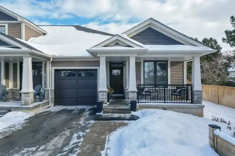 FULLY FINISHED, UPSCALE BUNGALOW LIVING … Tucked away at 13 Dandurand Court in Grimsby, this Phelps-built “LEGACY” bungalow condo townhome offers refined living within a prestigious, well-maintained enclave you’ll be proud to call home. This bright & open 2+1 bedroom, 3 bathroom END-UNIT is enhanced by abundant natural light and a thoughtfully designed layout. From the moment you arrive, appreciate the recently updated walkway, adding to the home’s curb appeal and welcoming entry. Inside, countless UPGRADES elevate the space, including 9′ ceilings, California shutters, crown moulding, and upgraded engineered hardwood flooring throughout the main level. The OPEN-CONCEPT design showcases a beautifully upgraded kitchen with QUARTZ countertops, breakfast bar, tile backsplash, abundant cabinetry, built-in microwave, and gas stove, seamlessly connecting to the living area. Sliding glass doors with transom window lead to an extended 8′ x 12′ deck, perfect for relaxing or entertaining in the cozy, private yard. The primary bedroom is a true retreat, featuring an XL walk-in closet and a spa-inspired 4-pc ensuite with quartz counters, double sinks, and walk-in shower. A second bedroom, convenient 2-pc bath, and main-floor laundry complete the main level. Downstairs, the FULLY FINISHED LOWER LEVEL impresses with vinyl flooring and pot lights, offering an additional bedroom with sliding barn doors and walk-in closet, a full bathroom, spacious recreation room with gas fireplace and mantel, a WET BAR, dedicated internet hub, and plenty of storage. Enjoy the convenience of an attached garage, private driveway, and ample visitor parking. Ideally located just minutes to West Lincoln Memorial Hospital, the QEW, shops, schools, parks, and everyday amenities. Road fee includes sprinkler system, grass cutting, and snow removal, allowing for low-maintenance, worry-free living. CLICK on multimedia for video photos, drone photos and more.