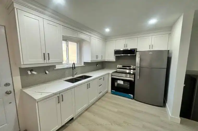 Welcome to this stunningly renovated lower-level home. Enjoy the functionality of a split-level layout that maximizes space and privacy. With 2 spacious bedrooms and a sleek 3-piece bathroom adorned with elegant marble detailing, every detail of this home has been crafted to enhance your lifestyle. The separate eat-in kitchen with a separate breakfast area, invites you to savor meals in style, featuring quartz countertops, custom flooring, and a stylish backsplash for a modern touch. The spacious living area provides the perfect setting for relaxation and entertainment, while the dedicated laundry room ensures that chores are handled with ease. Situated in a family-friendly neighborhood, this home is within walking distance to parks and schools, with easy access to the Go Station, major highways, TTC routes, and minutes to the airport. You’ll appreciate the convenience of the area while enjoying your shared backyard space. Two private driveway parking spaces are included, making this the perfect blend of comfort, style, and location.
