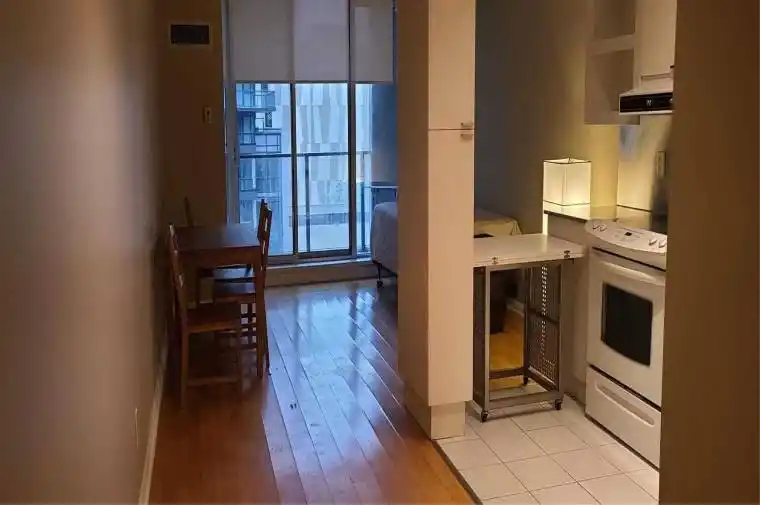 New wood floor. Freshly painted. 9′ Ceiling. Convenient location. Walk to TMU, Eaton Centre, Subway. No Parking, One Locker Included.