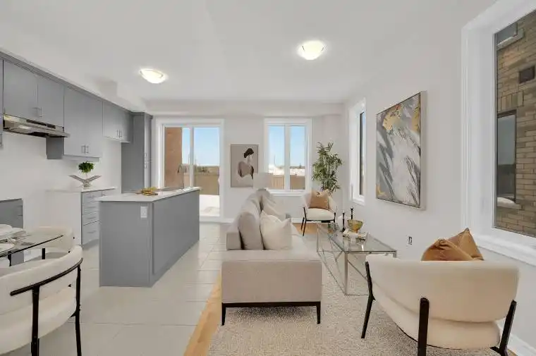 Step into a brand new freehold townhome by the Remington Group, newly completed and thoughtfully designed in one of Markham’s most welcoming, family-oriented communities. From the moment you enter, the home feels bright and open. Nine-foot ceilings on both the main and second floors create an easy sense of space, while hardwood floors on the main level add warmth and a clean, polished finish. The layout is practical and intuitive, designed for everyday life to flow comfortably. The kitchen is modern and functional, finished with granite countertops and ample cabinetry, making it a space that works just as well for busy mornings as it does for casual dinners and weekend hosting. Upstairs, the bedrooms are filled with beautiful natural light, creating spaces that feel cheerful, calm, and easy to settle into. The primary bedroom offers a quiet retreat, complete with a private ensuite, walk in closet and a freestanding tub, perfect for unwinding at the end of the day. The finished basement with a 3-piece bathroom adds flexible living space, ideal for guests, a home office, or family movie nights. Beyond the home itself, the neighbourhood truly stands out. This is a friendly, family-focused community, where schools, parks, trails, and everyday amenities are close by. Just steps away are the Aaniin Community Centre, transit options, major highways, and nature trails, making daily routines feel easy and connected. A never lived in home, offering light-filled living, modern comfort, and a community that feels genuinely good and safe to come home to.
