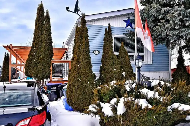 Wonderful opportunity for first time buyers or down sizers! Charming 2 bedroom modular home with spacious layout. Inviting living area features a chalet style beamed ceiling and cozy wood burning fireplace. Bright eat in kitchen with built in banquet seating. Two bedrooms and two bathrooms. The primary bdrm boasts a beautifully renovated ensuite. Outside enjoy a large deck with clear views of conservation – ideal for relaxing or entertaining . Recent upgrades include: shingles (2024) , deck (2021), new flooring (2021), primary bath (2021) , paved driveway (2021) , windows(2019). Located just minutes to Bradford this land lease community has NO AGE RESTRICTIONS. Monthly land lease of $595 includes property taxes, water and road maintenance. Home owner responsible for hydro, internet and phone. A wonderful opportunity to enjoy affordable living in a serene setting.