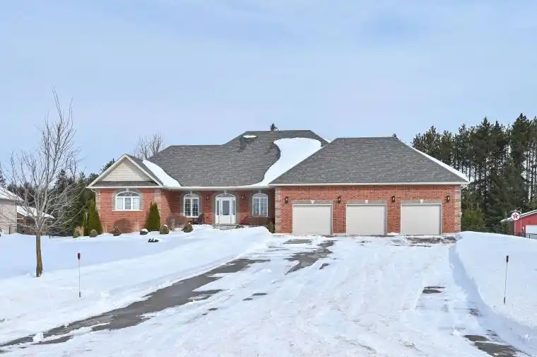 STUNNING CUSTOM BUILT BUNGALOW ON 1.5 ACRES IN ESTATE AREA! This gorgeous home offers exceptional craftsmanship, thoughtful design, and luxury living without compromise. From the moment you arrive, the impressive curb appeal and expansive setting set the tone. The open concept main floor is warm and inviting, featuring rich hardwood floors and spacious principal rooms ideal for both everyday living and entertaining. The seamless layout flows effortlessly to a large deck which is ideal for hosting barbeques or enjoying peaceful evenings. A fully finished lower level expands your living space with a huge rec room/gas stove, 4th BR, office, 3 pc washroom, storage areas. With R/I plumbing for a 2nd kit, stair access from garage, this home offers excellent in-law suite potential! Car enthusiasts and hobbyists will be thrilled with the extraordinary 1000 sq ft tandem garage offering ample space for vehicles, toys, or workshop needs. Additional highlights include : generac generator capable of operating the entire home when needed, in-ground sprinklers in the front yard! Truly a rare find!!
