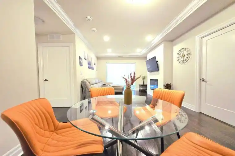 Welcome to luxury living in the heart of Downtown London at Azure Condominium. Furnished2-bedroom plus den and parking with over 1200 sqft, modern floor plan with open concept,kitchen features stainless appliances, quartz countertops, backsplash, breakfast bar, living and dining area features modern dinning sets with 4 stylish chairs, top grain leather L shape couch with cup holders, wall mounted TV and fireplace by gas, spacious den can be easily converted into 3rd bedroom, engineering hardwood floor in den, bedrooms, living/dining,carpet-free entire suite, storage room and laundry room provide more storage space out of 2 big walk-in closets – Clean furnished suite & Well Maintained – Move-In Ready.Building offers rooftop amenities featuring Social Lounge, Library, Private Dining Room, Golf Simulator, and a state-of-art fitness centre. The rooftop terrace offers panoramic city views,complete with BBQs, gas fire pits, and ample seating perfect for creating lasting memories. All just steps from London’s finest restaurants, pubs, park, entertainment, and all the action the vibrant core has to offer – A Place Of Your Dreamed Home!