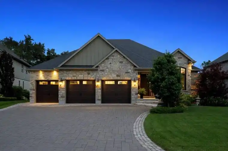 Custom Bungalow in Prestigious Lookout Point.This exceptional home is nestled in one of Fonthill’s most desirable neighbourhoods, is truly a masterpiece of thoughtful design and timeless elegance featured in Our Homes Magazine. Lovingly created by the owners and brought to life by Nauta Home Designs, every detail has been carefully curated for luxury, comfort, and functionality. Step into the great room and be immediately captivated by the vaulted shiplap and beamed ceiling, stunning stone gas fireplace, and a wall of windows framing breathtaking views of mature coniferous and deciduous trees changing beautifully with every season.The gourmet kitchen is the heart of the home, featuring a grand island, spacious dining area, and seamless access to a covered porch perfect for entertaining. A walk-in pantry and generous cabinetry provide ample storage while maintaining a clean, upscale look. The primary suite is a peaceful sanctuary with a fireplace, walk-in and double closets, and a spa- like ensuite complete with a large glass shower and luxurious soaker tub, overlooking serene backyard views. The front room, currently used as a parlour, easily converts to a main-floor bedroom with its double closet, and full bathroom just steps away. The spacious main-floor laundry adds everyday ease. As you descend to the fully finished lower level, you’re greeted by soaring 9′ ceilings and another beautifully appointed great room with stone fireplace and ceiling beams that mirror the upper levels elegance. This level also boasts a full second custom kitchen crafted by the same cabinetmaker, along with a charming dining area framed by a custom brick and stone accent wall evoking the feel of a rustic Italian villa. Garden doors open to a covered porch and large patio area, complete with a gas BBQ line an entertainers dream. Two generous bedrooms and a stylish full bathroom with a double vanity and spacious glass shower complete this level, making it ideal for extended family, guests.