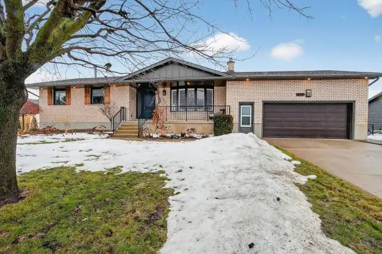 Welcome to this one-of-a-kind ranch in the charming small town of Mt. Brydges, where sophisticated country design meets thoughtful craftsmanship on a stunning park-like lot stretching 187 feet deep. From the moment you step inside, the foyer with custom built-in closet system and live edge bench sets the tone for the quality found throughout. The large bright living room features California shutters and is open to the dining area with access to the patio door and chef’s dream kitchen, custom designed by Cardinal Kitchens (2021) offering wood grain cabinetry, open shelving, pantry, abundant storage, and even a dedicated doggie dish area. The main 3-piece bathroom impresses with a steam shower, newer vanity with leathered granite top & stackable laundry unit. The primary bedroom boasts custom closets and an impressive ensuite, the vanity has a leathered granite vanity top and shower has cultured granite tiles. A third bedroom currently serves as a walk-in closet with built-ins. The lower level has a spacious rec room, newer tile flooring, gas fireplace with stone mantel, a 3-piece bathroom, laundry, and another room with cabinets and sink offering endless possibilities. Outside, sip your morning coffee on the front porch with custom rod iron railing and gate system or unwind on the expansive 26′ x 15′ deck with powered awning overlooking your private fenced backyard oasis, complete with raised garden beds, cedar hedging for privacy, underground irrigation system and sand point well providing free water. A concrete double-wide driveway leads to an oversized 23′ x 23′ attached 2-car garage with inside entry and a new garage door. All this, just 15 minutes from the city’s edge. Small town charm, big city convenience. Other updates: majority of windows, bedroom carpets, shutters, pine shed, James Hardie siding, eavetroughs, soffits & soffit lights. Rough-in central vac.