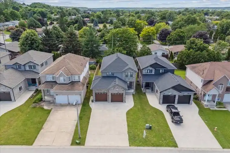Nestled at the end of a quiet cul-de-sac on the east side of Owen Sound, this stunning 2-storey stone home perfectly balances sophisticated style with the warmth of a true family home. From the moment you step inside, the open concept main floor reveals a layout designed for both high-energy entertaining and quiet everyday moments, further enhanced by the practical addition of a convenient main floor laundry room. At the heart of the residence sits a bright and modern kitchen, anchored by sleek quartz countertops, stainless steel appliances, and a center island that naturally becomes the hub for morning coffee and casual conversation. Rich hardwood flooring guides you through the airy dining area into a living room centered by a cozy gas fireplace, while sliding glass doors offer a seamless transition to the backyard deck for summer BBQs and outdoor relaxation. The upper level is a dedicated sanctuary, housing four generous bedrooms that ensure everyone has their own space. The primary suite serves as a private escape, complete with a walk-in closet and a spa-like five-piece ensuite. Downstairs, the finished lower level expands your living options significantly, offering a second gas fireplace in a welcoming family room along with a versatile fifth bedroom, ideal for a guest suite, a teenager’s hideaway, or a quiet home office. Perfectly positioned just minutes from the hospital, shopping, and Georgian College, this home offers a rare combination of peaceful cul-de-sac living and effortless everyday convenience.