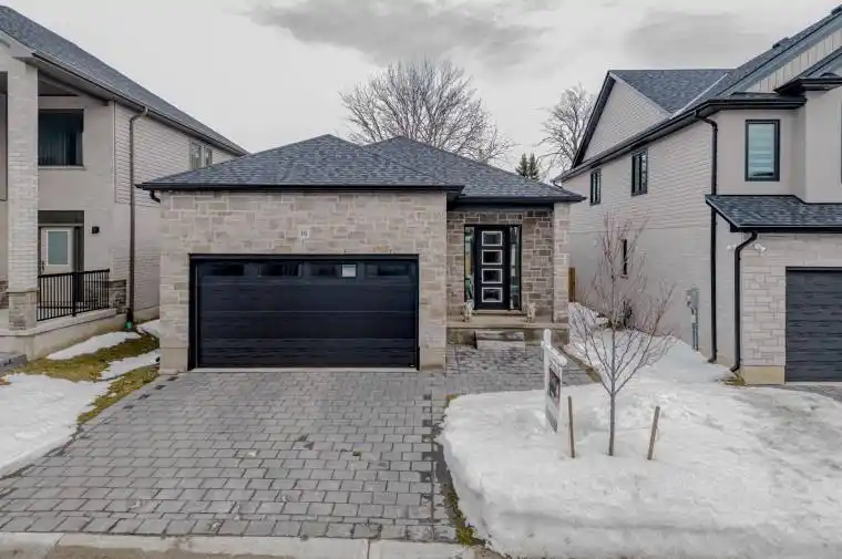Welcome to Granton Estates, a premier vacant land condominium community offering the perfect blend of modern luxury and peaceful living. Ideally located just 15 minutes from Masonville in London and only 5 minutes from Lucan, this exceptional bungalow provides suburban tranquility with convenient access to city amenities. This beautifully designed 1,277 sq. ft. bungalow features 2 bedrooms, 2 full bathrooms, and a spacious 2-car garage. The open-concept layout is enhanced by impressive 10-foot ceilings, creating a bright and airy atmosphere throughout. The custom kitchen is thoughtfully designed for both everyday living and entertaining, showcasing stunning quartz countertops, quality cabinetry, and premium finishes. The primary suite offers a private ensuite complete with an elegant glass shower. Engineered hardwood and tile flooring flow seamlessly throughout the home, combining style and durability. A side door entrance to the basement provides added flexibility and future development potential, as framing is already completed by the seller and seller can finish basement with 2 bedroom, one full bath accompanied by a kitchen, family room and separate laundry. The exterior boasts striking stone and brick finishes, adding timeless curb appeal to this charming community setting. Enjoy peaceful living just north of London while benefiting from significant value compared to neighboring communities. Don’t miss your opportunity to own in Granton Estates – where comfort, quality, and location come together.
