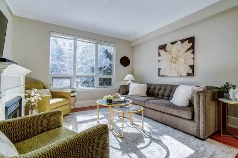 Welcome to an exceptional offering in the iconic St. Gabriel Village by renowned builder Shane Baghai, nestled in the prestigious Bayview Village community. This gorgeous, immaculate 2-bed, 2-bath residence offers 1,090 sf of refined living and represents one of the most attractive entry points into this exclusive, 2-tower enclave. This offering is uniquely positioned for discerning buyers seeking luxury, value and prestige. Thoughtfully designed and arguably the best 2-bedrm layout in the building, the suite features 9′ smooth ceilings, a welcoming gas fireplace, and an ideal split-bedroom plan for privacy. South-facing exposure floods the space with natural light, while the 2nd floor setting offers tranquil, tree-filled views and exceptional privacy. Rich hardwood and marble flooring, solid interior doors, and quality finishes reflect Baghai’s signature craftsmanship. The spacious primary retreat keeps you organized with closet organizers and a linen closet, and a large ensuite with lux features: a large jetted tub, separate shower with rain shower head and body jets, and a Toto Washlet. A modern LG WashTower (June 2025) enhances everyday convenience. The balcony includes a gas BBQ line for effortless outdoor cooking and entertaining. Inspired by French and Italian design principles with contemporary elegance, St. Gabriel Village offers superb management and 5-star hotel-like services: 24/7 concierge & security, valet parking and porter service (prompt deliveries to suites). Residents enjoy resort-style amenities including an indoor pool & hot tub, wet and dry saunas, fitness centre, games room, library, party room, visitor parking, beautifully landscaped gardens and a charming Village Square with a fountain. Steps to Bayview Village Shopping Centre, subway access and minutes to Hwy 401,404/DVP. This is sophisticated living at its finest.