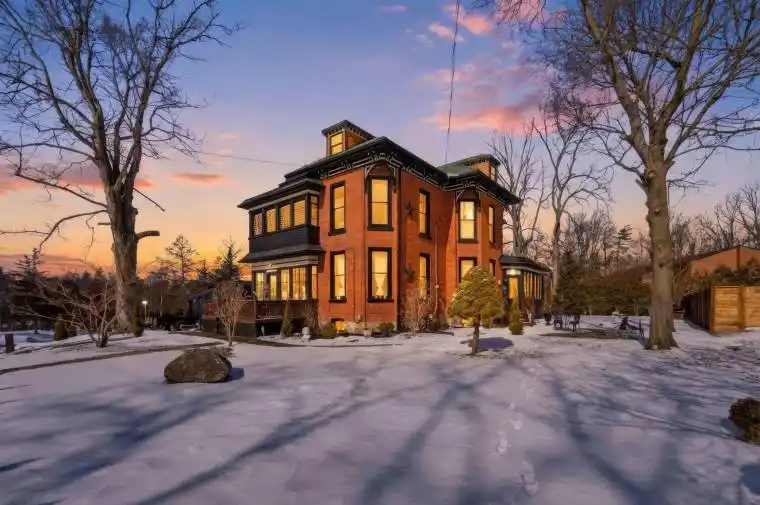 Welcome to the iconic Quance House – a celebrated landmark in Delhi, originally built in 1896 and steeped in local heritage. Once the residence of the prominent Quance family, owners of one of the last operating mills along Big Creek in Norfolk County, this grand 2.5-storey brick home is a timeless showcase of historic craftsmanship and enduring character. Set proudly on a rare half-acre corner lot spanning two streets, this stately property offers 4 spacious bedrooms plus a main floor office, 2 beautifully updated bathrooms, convenient main floor laundry, and a refreshed kitchen that blends modern function with classic style. Inside, the home’s rich history is on full display. Soaring tin ceilings, refinished hardwood floors, original trim, and intricate architectural details create a warm and elegant atmosphere reminiscent of a bygone era. The formal dining room and expansive living room provide refined spaces for hosting gatherings or enjoying peaceful evenings at home. Thoughtfully maintained and updated, the home features newer windows, a durable steel roof, a double furnace system for efficient comfort, an owned hot water tank, and a Culligan water softener system. The full walk-through basement offers excellent storage and usability, complete with new awning-style windows that bring in natural light. Outdoors, the detached double-car garage includes an attached heated man cave – perfect for hobbies, a workshop, or entertaining on game day. The expansive backyard offers ample space to relax, garden, or explore the exciting potential for future lot severance. Located just steps from Quance Park, scenic walking trails, and the natural beauty of Big Creek, this is a rare opportunity to own one of Delhi’s most treasured historic homes. Historic charm. Modern comfort. Endless potential.