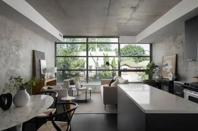 Welcome to The Ninety, a boutique loft residence where contemporary design meets authentic urban character. This thoughtfully designed 1+den suite showcases exposed concrete walls and ceilings, hardwood flooring, stainless steel appliances, and a seamless open-concept layout ideal for modern living.The generous den offers exceptional flexibility-perfect as a second bedroom, home office, or creative space-while expansive wall-to-wall windows flood the living area with natural light, enhancing the home’s bright, airy atmosphere. Renowned as one of Toronto’s most sought-after boutique loft buildings, The Ninety blends historic charm with modern finishes and offers desirable amenities including a landscaped courtyard terrace, party room, and concierge service. Ideally located in the heart of Riverside/Leslieville, you’re just steps from Queen Street East’s cafés, restaurants, shops, parks, and trails, with convenient access to transit and major highways.
